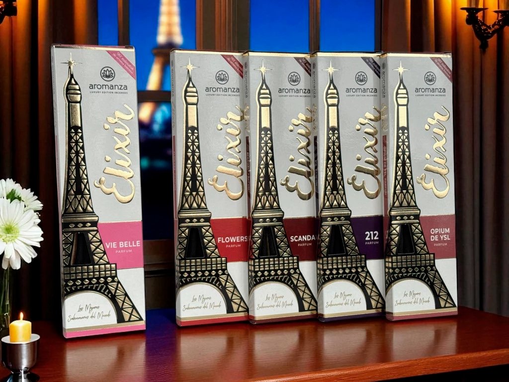 Disfrutá de una experiencia única con los sahumerios Elixir Aromanza, inspirados en los perfumes más populares y sofisticados. Cada varilla desprende un aroma envolvente que combina la intensidad del perfume con la calidez del sahumerio, creando un ambiente ideal para relajarte, meditar o perfumar tus espacios.
